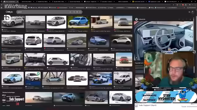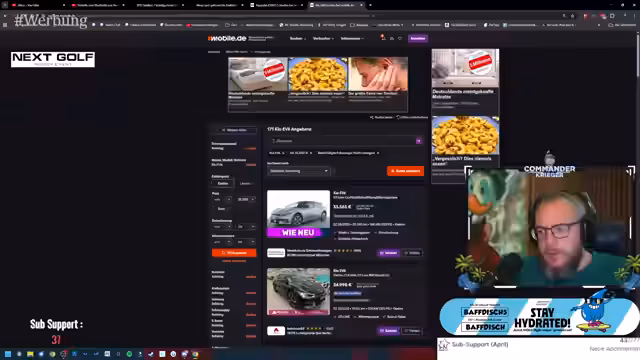 05:08:07Die letzten Minuten des Streams konzentrieren sich auf die persönlichen Kaufüberlegungen des Streamers für einen gebrauchten Kia EV6. Sein Budget liegt bei maximal 35.000 Euro, und er sucht ein Modell mit unter 60.000 Kilometern, der GT-Line-Ausstattung und wenn möglich einer Anhängerkupplung. Er diskutiert Farben wie Grau matt oder Rot und vergleicht das Fahrzeug direkt mit Alternativen wie dem Tesla Model Y und dem BYD Sea Lion, wobei er den EV6 als attraktivste Option betrachtet.