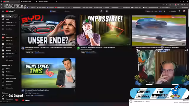 05:55:39Der Streamer endet mit einem humorvollen, aber tiefgründigen Gedankenexperiment. Er beschreibt die fiktive Situation, wie die Partnerin eines passionierten Autofahrers bei einer sportlichen Ausfahrt auf der Rennstrecke leidet, nur um ihrem Partner eine Freude zu machen. Dieses Bild illustriert auf unterhaltsame Weise die persönlichen Opfer, die manchmal für die Liebe zum Automobil gebracht werden.
