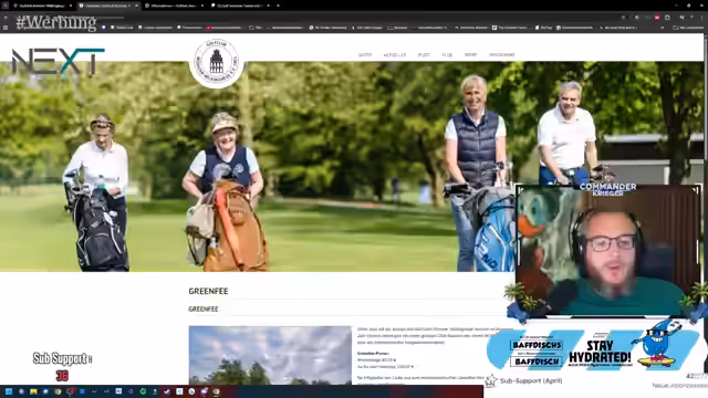 00:00:00Der Stream beginnt mit einer Reflexion über das kürzlich gespielte Scramble-Turnier. Der Fokus liegt auf den eigenen Leistungen und dem Vergleich zur letzten Runde, wobei ein leichtes Verbesserungspotenzial festgestellt wird. Besonders die Strategie beim Abschlag und die gegenseitige Unterstützung im Team wurden als entscheidend für den Spielverlauf erörtert. Es wurde angemerkt, dass ein zufälliger schlechter Abschlag erheblichen Druck erzeugt. Insgesamt wurde das Turnier als positiv bewertet, auch wenn die Siegerehrung etwas aufwendig war und die Preise im Vergleich zum Nennengeld als eher gering empfunden wurden.