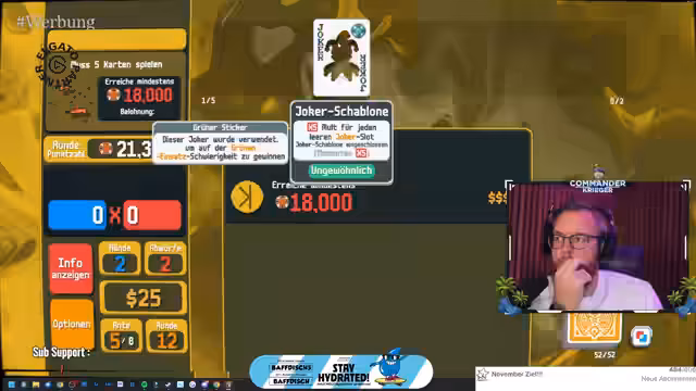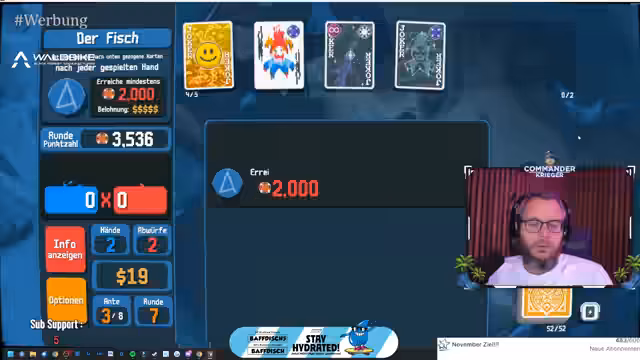 00:35:27Während des Streams kommt es zu technischen Problemen mit der Maus und der Bildschirmanzeige, was zu Frustration führt. Der Streamer versucht, ein Sim-Racing-Spiel zu spielen, stellt jedoch schnell fest, dass diese Art von Spiel nicht seine Welt ist und ihm die Motivation fehlt. Er wechselt zu einem Kartenspiel (Highcard), um den Multiplikator zu erhöhen und versucht, eine 'Flasch' zu erzielen. Er äußert den Wunsch, Battlefield 6 zu spielen, betont aber, dass dafür ein Team notwendig ist, um den vollen Spielspaß zu erleben. Die technischen Schwierigkeiten und die mangelnde Begeisterung für bestimmte Spiele zeigen eine gewisse Unzufriedenheit mit dem aktuellen Gameplay-Verlauf.