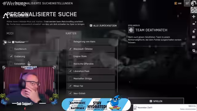 00:00:04Der Stream beginnt mit der Begrüßung der Zuschauer und der Feststellung eines Doppel-EP-Wochenendes im Spiel. Es wird über verschiedene Waffen diskutiert, insbesondere die BM-26 und die B36 A4, wobei Unklarheit über deren Typ besteht. Ein Spieler erwähnt, dass er die Sturmsoldaten-Expertise noch nicht freigeschaltet hat, da er diese Klasse selten spielt. Die Gruppe bereitet sich auf ein Spiel vor, wobei Marius noch zum Beitritt aufgefordert wird. Es wird entschieden, verschiedene Spielmodi wie Rush, Eroberung, Squad Deathmatch und Vorherrschaft zu spielen, wobei die Brandgranaten als sehr effektiv hervorgehoben werden.