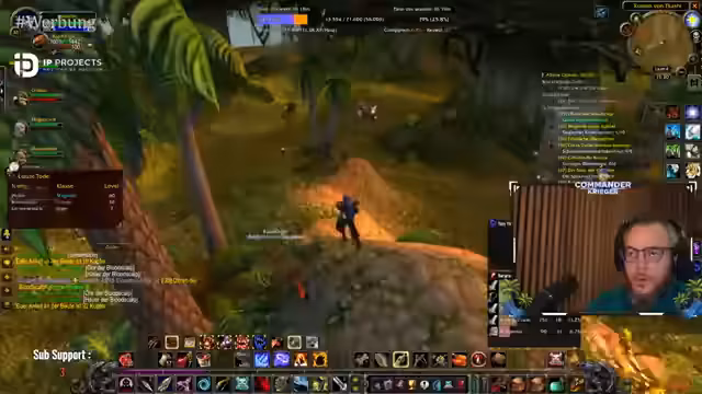 12:31:42Im Stream wechselt der Fokus zu World of Warcraft, wo der Streamer mit seinem Charakter Hanislav auf Level 35 Quests erledigt und in Gebieten wie Arathi Highlands XP farmt. Er interagiert mit anderen Spielern, plant Grind-Spots für Wildtiere und diskutiert strategische Aspekte wie die Vermeidung von Elite-Gegnern und das optimaler Wegstrecken für Effizienz. Diese Aktivitäten zeigen den progressiven Spielfluss und die Zusammenarbeit innerhalb der Community, wobei persönliche Anekdoten über das Überleben in gefährlichen Zonen eingewoben werden.