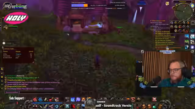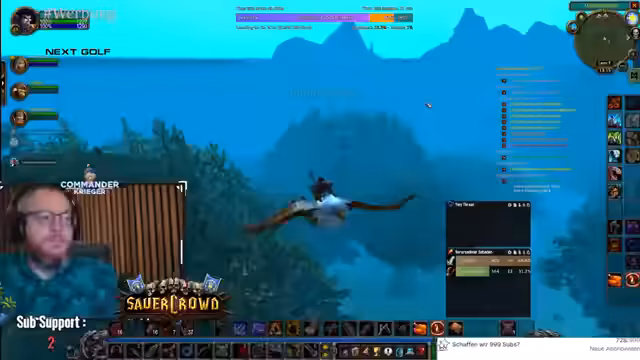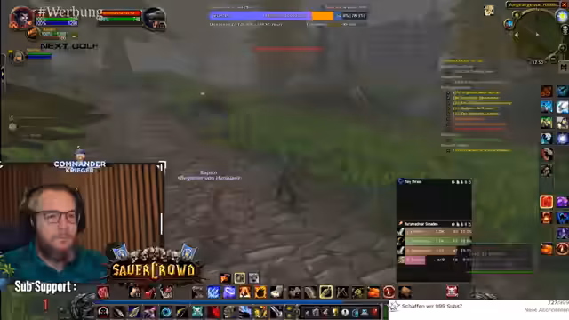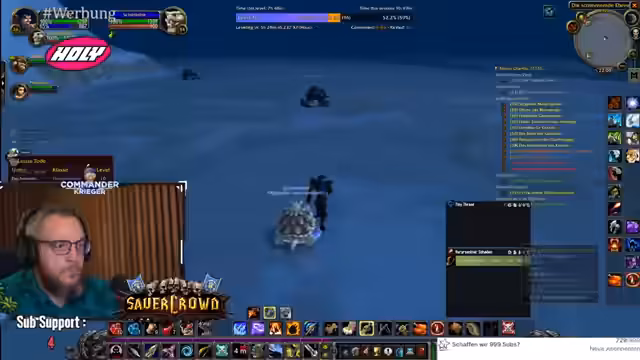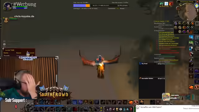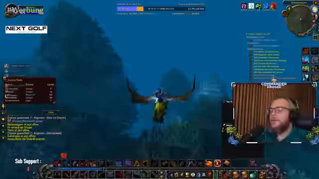 16:42:29Nach über 17 Stunden Streaming zeigt der Streamer Erschöpfung und Unzufriedenheit mit dem aktuellen Spielverlauf. Der XP-Fortschritt ist langsam, und einige Quests wie die Yeti-Jagd werden als „Müll“ bezeichnet. Plötzliche Layer-Wechsel und unvorhergesehene Mobs führen zu gefährlichen Situationen und zur Unzufriedenheit. Nach dem Erreichen des Levels 40 zieht sich der Streamer schlussendlich aus dem Spiel zurück, verabschiedet sich von der Community und beendet den Stream.