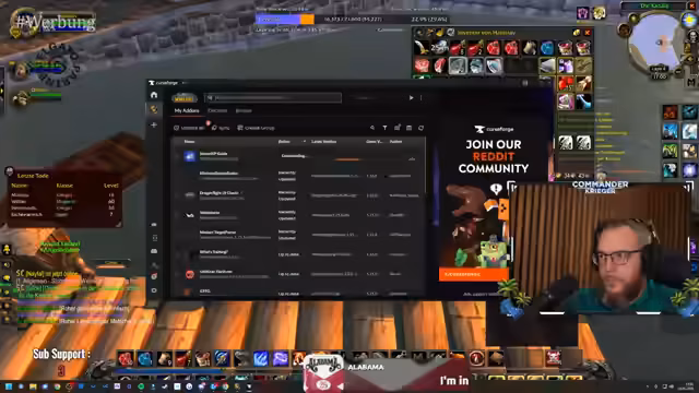 16:27:38Um das Level 40 zu erreichen, farmt der Streamer weiter Erfahrungspunkte, insbesondere über 31er-Mobs. Die Yeti-Pelze für eine Quest droppen jedoch sehr langsam, was frustrierend ist. Die Benutzeroberfläche wird angepasst; Weak-Auras werden installiert, um den Überblick über die Gesundheit zu behalten. Gleichzeitig werden verschiedene Add-Ons wie GuildMapOS und World Map Fix besprochen, um die World of Warcraft-Erfahrung zu verbessern und die Gildenkommunikation zu erleichtern.