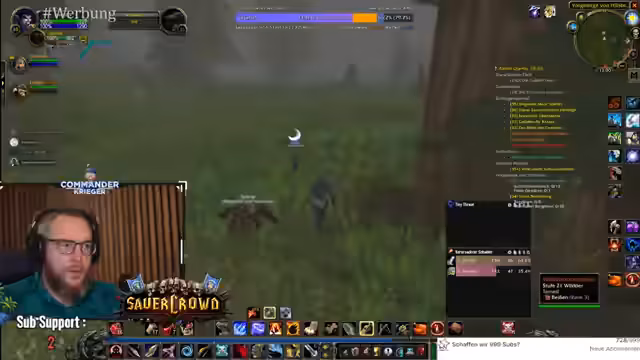 13:18:13Die Gruppe versucht, Abzeichen für eine Quest zu farmen, indem sie Schurken bekämpft. Die Jäger kann die Gegner mit einem Leuchtfeuer-zauber aufdecken, da sie sonst unsichtbar sind. Man beschließt, die Burgeinsicht zu vermeiden, da die Gefahr zu hoch ist, und stattdessen weiter in der Nähe zu farmen. Der Krieger zieht zwei Gegner gleichzeitig an, was eine gefährliche Situation ist. Der Streamer weist darauf hin, dass der Krieger seine Fähigkeiten wie den Taunt besser nutzen muss, anstatt nur zu jammern.