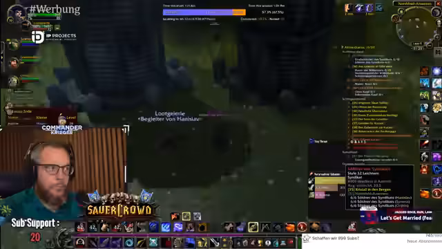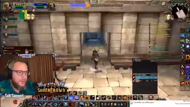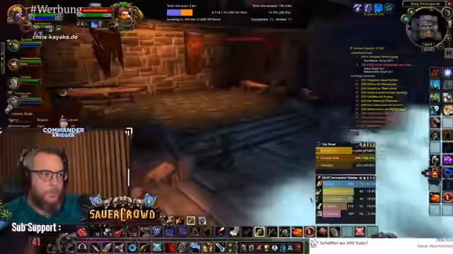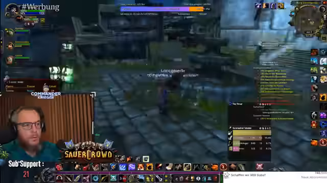 15:08:51Die Gruppe betritt eine Burg und kämpft gegen Elite-Bosse wie Otto und Falkenstein. Der Streamer (Jäger) koordiniert mit Basti (Tank/Healer) und Sascha: Sie nutzen Eisfallen, taunen Bosse und priorisieren Ziele. Nach einem intensiven Kampf mit kritischen Schadensmomenten besiegen sie die Bosse. Dabei geht es um Loot-Verteilung (Abzeichen, Kopf-Quests) und Folgequests. Ein Problem taucht auf: Der Streamer hat vergessen, die Relikte in der Umgebung zu aktivieren, was zu Verwirrung führt. Die Gruppe plant danach, einen Elite-Oger in der Burg zu töten und weitere Quests abzuschließen.