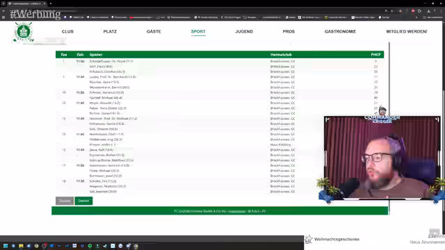00:06:30Ein zentrales Thema ist das erste offizielle Golfturnier des Streamers. Er berichtet detailliert über seinen Start, das Kennenlernen neuer Mitspieler und das spezielle Startformat des Turniers. Er geht ins Detail über seine Einstufung mit einem Handicap von 36, obwohl sein tatsächliches Handicap 54 ist, und erklärt die damit verbundenen Spielvorgaben, die ihm mehr Schläge pro Loch erlauben. Der Streamer ist mit dem Verlauf und dem的氛围 des Turniers zufrieden.