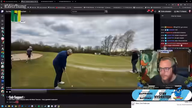 04:57:44Die Runde im Golf-Spiel wird durch eine humorvolle und chaotische Interaktion geprägt. Der Streamer und seine Mitspieler, insbesondere 'Dröbel', machen sich über ungewöhnliche Aktionen wie einen Purzelbaum lustig. Bei den Tutorials im Spiel kommt es zu technischen Problemen und Verwirrung, was zu einem gescheiterten Versuch eines bezahlten Spiels führt. Der gesamte Prozess ist von spontaner Aktion und einem freundschaftlichen, aber auch konkurrierenden Umgang miteinander geprägt.