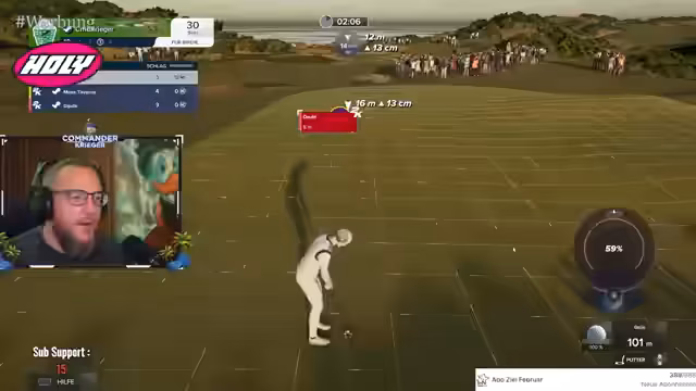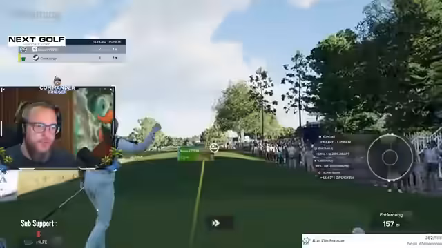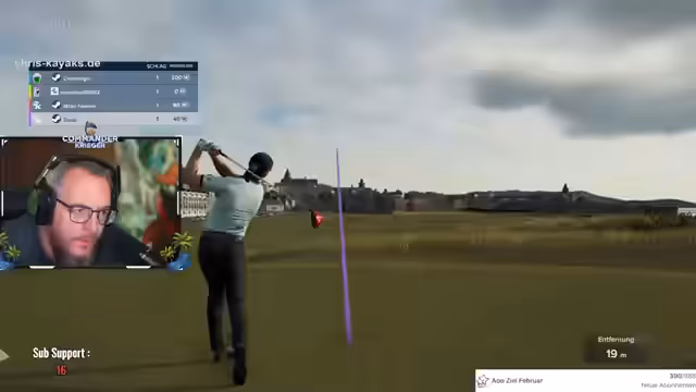 05:02:06Nach dem gescheiterten ersten Spielversuch startet eine neue Runde mit denselben Spielern. Der Streamer nutzt die Wartezeit, um neue Zuschufer wie 'Nox' in den 'Kriegers Clubhouse' einzuladen. Das Spiel beginnt auf dem berühmten Course 'St. Andrews'. Die anfängliche Euphorie wechselt schnell zu Frustration, als die Spieler Schwierigkeiten haben, die Spielanfragen zu akzeptieren und der Start verzögert wird. Die Runde beginnt schließlich chaotisch mit mehreren Spielern, die nicht korrekt in der Lobby positioniert sind.
