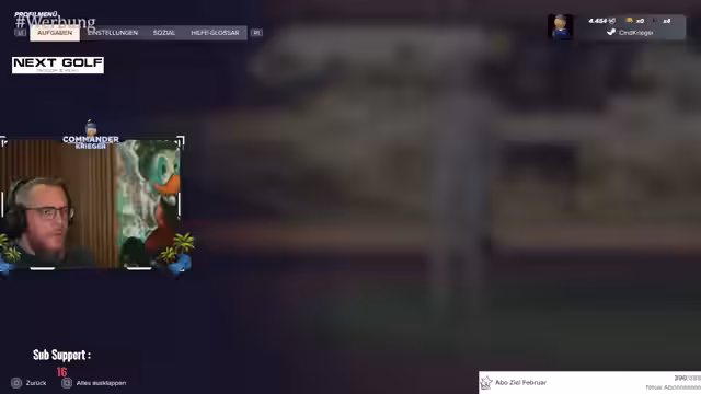 00:00:42Der Stream beginnt mit der Ankündigung eines neuen Golfclubs namens 'Kriegers Clubhaus'. Die geplante Gesellschaft soll ein privater Club mit dem Schwierigkeitsgrad 'Profi' sein. Die Mitgliederverwaltung wird besprochen und es wird das Ziel genannt, ein erstes Greenfield Tour-Turnier zu bestreiten. Neben dem eigenen Club sucht der Streamer auch nach einem Flight für sein erstes Handicap-relevantes Turnier, den Masters, und bittet um eine lockere Zusammensetzung der Mitspieler.