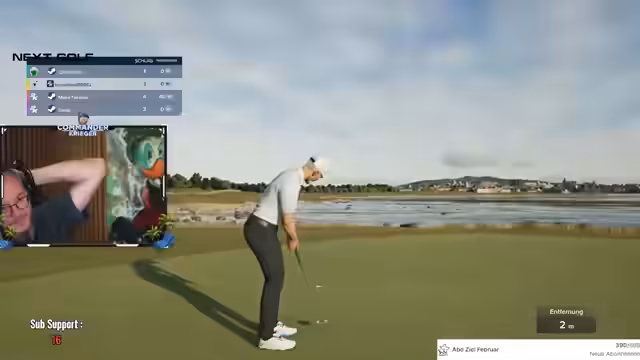 05:05:36Es kommt zu einer Diskussion über die Puttlinie, die als Hilfsmittel im Spiel dient. Ein Teilnehmer ist verärgert über deren Nutzung und bezeichnet sie als 'für Volltrottel'. Die Gesprächspartner einigen sich darauf, die Hilfslinie nicht zu verwenden, um den Wettkampf fair und auf hohem Niveau zu gestalten. Dies unterstreicht den Wettbewerbscharakter des Streams und das Bemühen um sportliche Integrität.