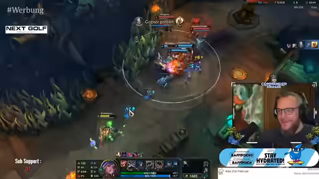 07:19:07Nachdem das Golfspiel persistente Probleme macht, wechseln die Streamer zu League of Legends, speziell in den Aram-Modus. Dabei muss der Streamer feststellen, dass Max, ein Mitspieler, das Spiel verlassen hat. In der Lobby wird humorvoll über die Charakterentwicklung gesprochen, wobei jeder einen einzigartigen Hintergrund und Namen erhält, was zu unterhaltsamen Anekdoten über erfundene Biografien führt.