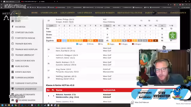 01:58:48Nach der mentalen Wende spürt der Streamer eine deutliche Besserung. Ein Birdie ist der Beweis für seine zurückgekehrte Form und gibt ihm neuen Schwung. Er ist mit seiner Leistung, trotz eines hohen Scores, zufrieden, da das Gefühl am Schläger stimmt. Nun steht die Vorstellung des finalen Ergebnisses im Fokus. Es wird angekündigt, die Platzierungen und das Punktesystem der Brutto- und Netto-Wertung ausführlich zu erklären, um den Zuschauern einen umfassenden Überblick über das Turnierergebnis zu verschaffen.