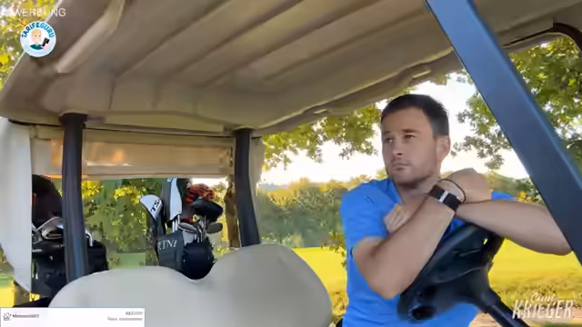 00:37:58Die Golfpartie wird durch die hügelige Landschaft und die Wetterbedingungen maßgeblich beeinflusst. Max Schmitt beschreibt die ungewohnte körperliche Anstrengung durch ständiges Schrägstehen und die damit verbundene ungewohnte Belastung für den Körper. Er kritisiert die Witterung in Deutschland und erklärt, wie das Winterwetter den Platzzustand negativ beeinflusst. Der „Glückskrieger“ macht einen parierten Schlag, bei dem er unabsichtlich einen Baum trifft und in einen Bunker gelangt, was das Management des Loches kompliziert.