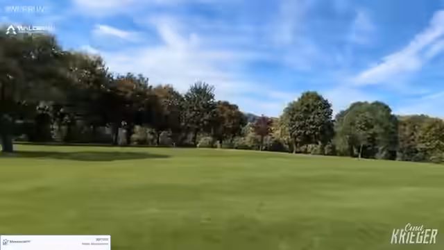 01:45:05Auf einem der Löcher gelingt Max Schmitt ein dramatischer Schlag mit dem Holz 3, der nach einem extrem hohen Bogen und einem scheinbar endlosen Flug sehr weit rollt und schließlich im Spiel bleibt. Dieser Glücksfall wird im Chat gefeiert. Die ungewöhnliche Flugbahn des Balls führt zu einem lautstarken惊叹, und Max Schmitt selbst bezeichnet den Ball als ein ‚Vieh‘. Die Szene demonstriert die unvorhersehbaren Momente, die das Golfspiel ausmachen.