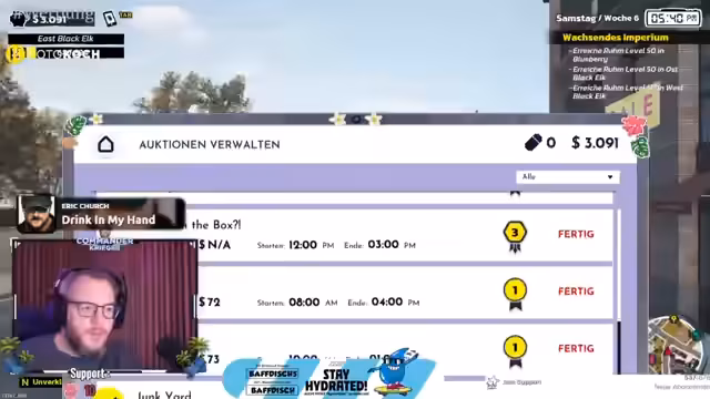 00:09:24Die Aufmerksamkeit verlagert sich auf eine laufende Auktion im Lager, bei der der Streamer den Sieg für einen Gegenwert von 2-2 erwartet. Nachdem eine Benachrichtigung eingegangen ist, werden verschiedene Gegenstände wie Pedertaschen untersucht und beurteilt. Die Auktion endet knapp, ein erneuter Start einer Klimaanlage im Hintergrund wird erwähnt, was auf ein bevorstehendes Problem hindeutet.