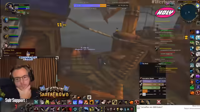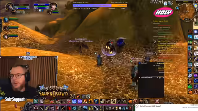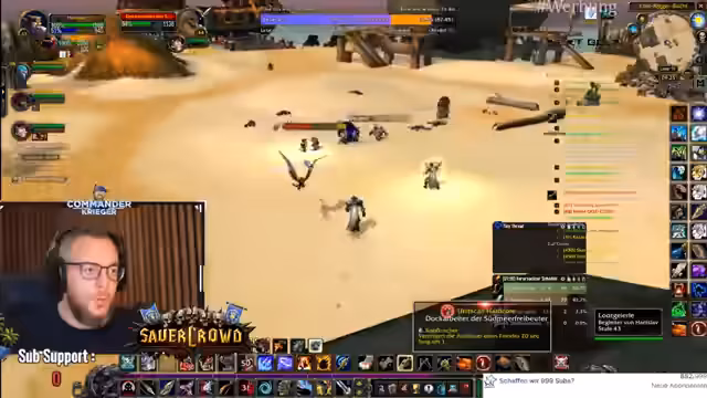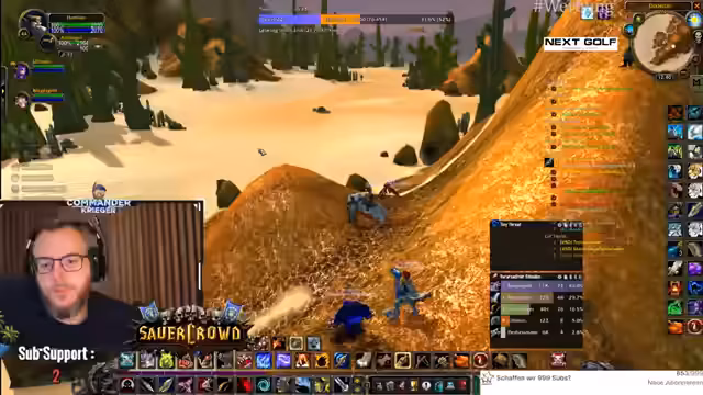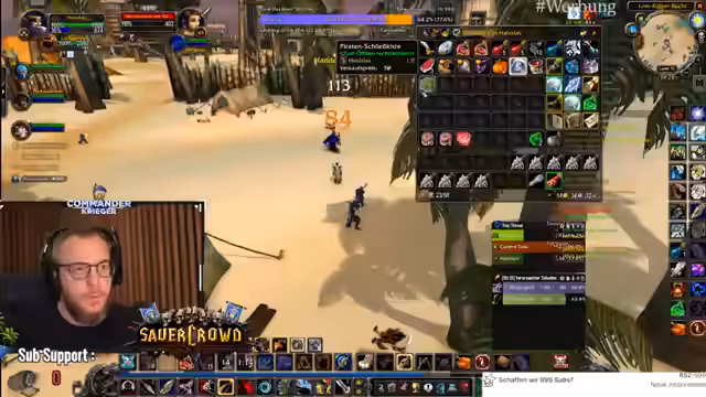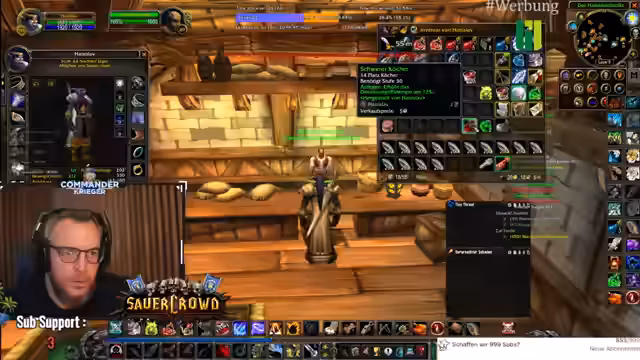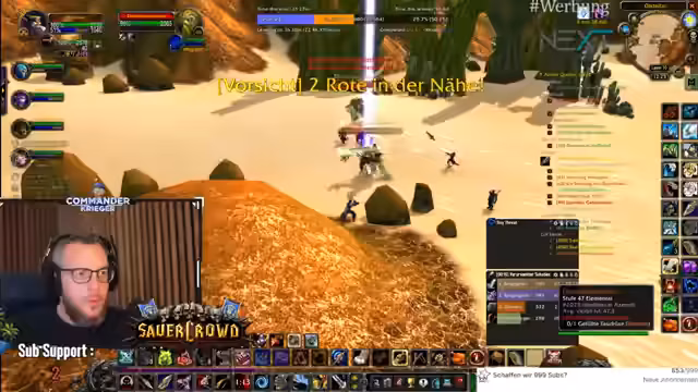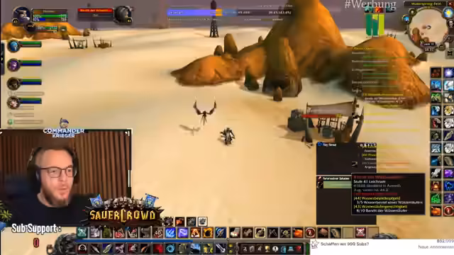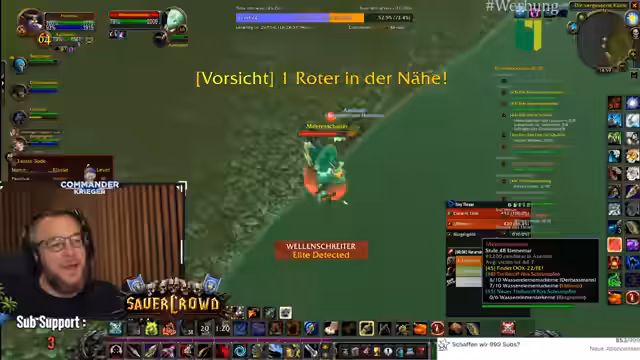 00:18:48Der Fokus liegt auf der Erforschung von Quests in der Spielwelt Tanares. Der Streamer trifft auf NPCs mit ungewöhnlichen Interaktionen, wie jemandem, der eine Kombination aus Spucken, Küssen und Entschuldigen praktiziert. Es wird eine wichtige Quest für Leveln angenommen und der Weg zu den Piraten vorbereitet, um verschiedene Gegner wie Eliteschurken und Weltbosse zu bekämpfen. Die Gruppe koordiniert ihre Aktionen, insbesondere beim Angeln von Rüstungsteilen, und berichtet über erfolgreiche und gescheiterte Versuche, Loot zu erhalten. Die Gruppendynamik ist durch gegenseitiges Unterstützen und manchmal auch chaotische Situationen geprägt.