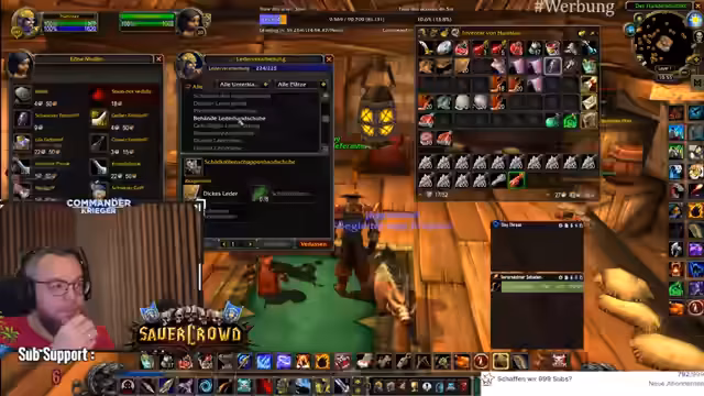 04:11:54Die Diskussion verlagert sich auf die Gilde und deren Bedürfnisse. Der Streamer betont die Wichtigkeit der Lederverarbeitung als Schlüsselberuf und fordert die Mitglieder auf, Gold für die Weiterentwicklung zu spenden. Es kommt zu internen Diskussionen über die Verteilung von Ressourcen, wie Seelensplitter, und die Sorge, dass ein oft sterbendes Mitglied die Gemeinschaft belastet.