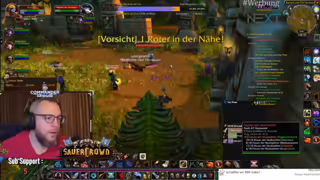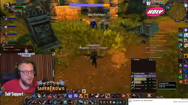 00:00:15Der Stream beginnt mit dem Jäger Hanislav im Level 39, der ein Ziel hat: Er möchte auf diesem Durchgang sterben und sammelt daher alle notwendigen Fetische für die Ankündigung '0 Tode Road'. Er ist im Schlingdorn-Tal und stellt fest, dass das Raffen der aktuellen Situation in World of Warcraft das Schwierigste ist. Nach einem frühen Tod infolge einer unachtsamen Questentscheidung ist er zurück und motiviert, sein Ziel zu erreichen, wobei er betont, dass ihm das Spiel trotz der Todesdrohung Spaß macht.