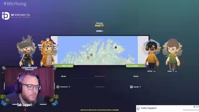 01:24:51Der Kommentator und sein Co-Moderator bereiten das nächste Match zwischen den Teams Pinmihada und Mackerknacker vor. Es kommt zu kleineren technischen Unstimmigkeiten, da der Lobby-Code versehentlich im Stream sichtbar war. Trotzdem starten die Spieler. Die erste Runde findet auf der Community World Map statt, was经典的 Master-Maps und hohes Niveau erfordert. Die Spieler arbeiten mit strategischen Splits und nutzen Meta-Knowledge, um die wahrscheinlichsten Länder wie Chile, Brasilien oder Indien zu raten.