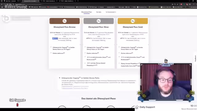 05:54:39Der Kauf eines Disney-Passes wird als kluge finanzielle Entscheidung für begeisterte Besucher dargestellt. Im Vergleich zu den hohen Kosten für Disney-Hotels (bis zu 300 Euro/Nacht) und Eintrittskarten kann eine Jahreskarte über 289 Euro den Eintritt und das Parken für mehrere Wochentage abdecken. Der Silber-Pass bietet noch mehr Nutzungstage und zusätzliche Rabatte von 10% in den Shops und bei Fotos. Der Gold-Pass ermöglicht zudem einen frühzeitigen Parkzugang und bietet 15% Rabatte, was bei teureren Essensangeboten schnell einschlägt.