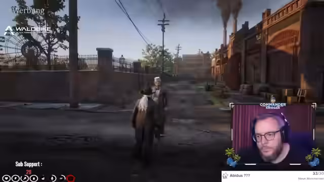 02:55:39Der Streamer berichtet von einem unerwarteten Landangebot durch Mexikaner, nachdem er über Nacht unterwegs war. Die gezeigte Umgebung beschreibt er jedoch als Drecksnest, ein Sumpfgebiet mit unzähligen Mücken und toten Körpern. Ein Hinweis auf eine Person namens Wilson, die Bürgermeister werden soll, und die sich mit der Erbauffindung beschäftigt, wird im Zusammenhang mit düsteren Vorahnungen über einen bevorstehenden Tod ausgesprochen.
