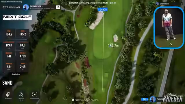 00:10:45Der Streamer stellt sein Trackman-Handicap von 34 vor und spielt live Golf. Er erklärt die Anzeige der Schlagvorgaben und wie die Zuschauer durch Tipps gewinnen können. Während des Spiels diskutiert er Wasserhindernisse und strategische Entscheidungen. Die Zuschauer können in Echtzeit tippen und verfolgen, wie ihre Vorhersagen mit den tatsächlichen Schlägen übereinstimmen. Der Streamer versucht, sein Handicap zu unterbieten und kommentiert jeden Schlag ausführlich für die Zuschauer.