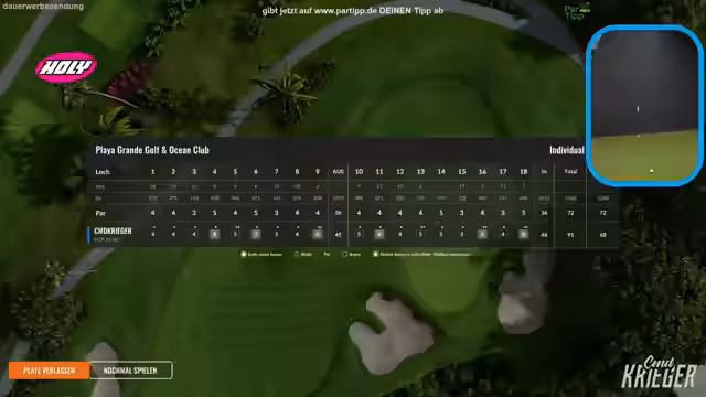 00:04:43Der Streamer erklärt das Handicap-System und wie Zuschauer durch die Eingabe ihres Handicaps auf Partip Golfschläger gewinnen können. Für Nicht-Golfer gibt es einen Golf-Schnupperkurs als Gewinn. Die Teilnahme erfordert die Angabe von Name, Vorname und Postleitzahl, ohne vollständige Adresse. Auf Partip kann man sich als Golfer oder Zuschauer registrieren und durch die Eingabe von Handicap bzw. Teilnahme an Events Preise gewinnen. Die Plattform verlost regelmäßig Golf-Snifferkurse und andere Golf-bezogene Preise.