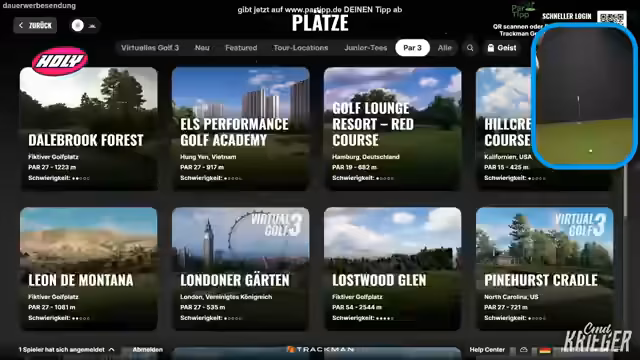 01:12:13Der Streamer erklärt die Verfügbarkeit von Golfplätzen auf Trackman. Viele Plätze sind nicht verfügbar, weil Clubs hohe Lizenzgebühren zahlen müssen, um vermessen zu werden. Berühmte Plätze wie Augusta oder TPC Sawgrass geben ihre Lizenzen nicht heraus. Trackman misst Plätze mit Drohnen aus, um exakte Nachbildungen zu erstellen. Trotzdem gibt es eine große Auswahl an Plätzen, darunter Pebble Beach und Liberty National. Der Streamer erwähnt, dass neue Plätze regelmäßig hinzugefügt werden, er aber noch nicht alle durchgespielt hat.