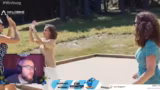 01:36:17Zu Beginn des Streams wird im Detail das Spiel Wikinger-Schach erklärt. Team B muss zuerst versuchen, alle Feldcups der gegnerischen Hälfte umzuwerfen. Wird ein Basiskupp vor den anderen Feldcups umgeworfen, muss er wieder aufgestellt werden. Nachdem Team B alle sechs Wurfhölzer geworfen hat, ist Team A an der Reihe. Konnte Team B nicht alle Feldcups umwerfen, darf Team A bis zum nächstgelegenen Feldkupp vorrücken und erhält eine neue Wurfhlinie. Die umgeworfenen Cups werden dabei aus dem Spiel entfernt.