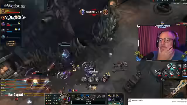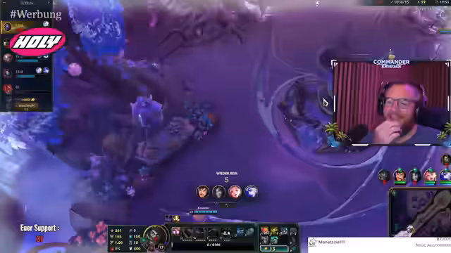 06:03:17Es wird eine goldene Regel in Aram erklärt, bei der man nur als Gewinner gilt, wenn man lebend am gegnerischen Nexus postiert ist. Andernfalls hat man maximal nicht verloren. Es wird betont, dass man dafür auch über Leichen gehen muss. Es wird über das Gefühl diskutiert, ein alleiniger Gewinner zu sein. Das aktuelle Spiel wird als High-Kill-Game und von Spannung geprägt beschrieben. Es wird überlegt, welche Engage-Ultis die Gegner haben. Ein Spieler flasht umsonst in einen Kampf und stirbt. Es wird über Tower-Hard-Lows gesprochen. Der Streamer ist chatrestricted und kann die Gegner nicht beleidigen, was ihm keinen Spaß macht. Er sieht das Ragen im Spiel als Ausgleich zum Golfen, wo er nicht fluchen darf. Es wird über unberechtigte Chat-Bans diskutiert. Desmond hat das System gedribbelt, indem er sich jetzt im Chat benimmt. Es wird überlegt, ob man die Riven rauspushen lassen soll. Zero hört nur auf, wenn das Team gewinnt. Das Spiel wird als langweilig empfunden und es juckt dem Streamer in den Fingern. Es wird überlegt, ob es gut ist, zu engagieren, aber das Team verliert dadurch zwei Tower. Es wird diskutiert, wer das Hauptziel ist. Der Streamer kann sich immer wieder heilen, wenn er reingeht. Es wird überlegt, ob die Ultme in den Tower gut war. Es wird überlegt, ob der Fizz besser in der Base gestanden hätte. Die beiden Boys machen etwas und der E-Sportler kommt gleich mit Ult. Das Spiel ist fast vorbei.