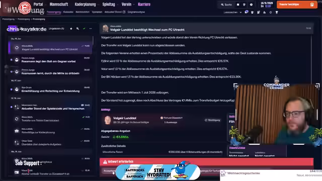 00:02:46Streamer erinnert Patrick an bevorstehende private Termine wie den Geburtstag seines Sohnes und die Planung des Weihnachtessens. Er betont die Wichtigkeit, sich mit WoW zu beschäftigen, anstatt sich ausschließlich um Football Manager zu kümmern. Es herrscht Hektik im Zusammenhang mit dem Autoholen und anderen privaten Verpflichtungen.
