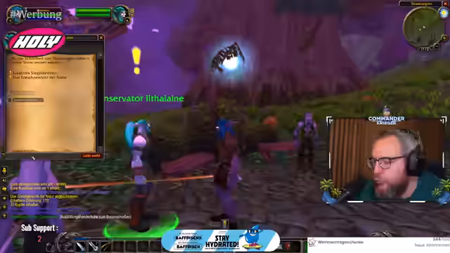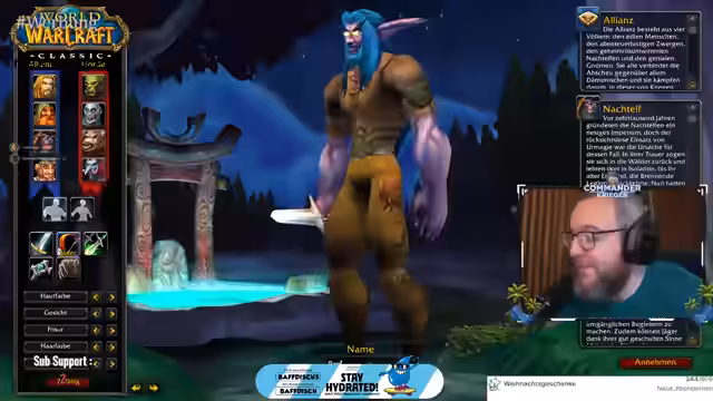 01:08:32Der Stream beginnt mit einer nostalgischen Rückblende auf 20 Jahre alte Spielinhalte, die die Zuschauer in die Welt von Azeroth entführen. Es wird die Geschichte des zerbrochenen Pakts zwischen Horde und Allianz nach der Rettung Azeroths vor der Brennenden Legion thematisiert, was die Bühne für das Spielgeschehen bereitet. Anschließend wird die Charaktererstellung in World of Warcraft gezeigt, wobei ein Nachtelf-Jäger namens 'Hannislav' ausgewählt wird. Die anfängliche Überraschung über die 'schlechte' Grafik des Spiels im Vergleich zur Erinnerung wird schnell durch die Begeisterung und Gänsehaut-Momente über die Atmosphäre und das Gameplay abgelöst. Die Wichtigkeit der Charakteridentifikation wird betont, insbesondere bei der Auswahl von Haarfarbe und Bart, um eine persönliche Verbindung zum Avatar herzustellen.
