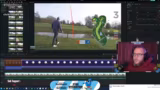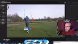 01:57:05Die Aufnahmen der Golfrunde werden vorgeführt, wobei Schläge und Ballflug mit Hilfe eines Shot-Trackers visualisiert werden. Der Streamer kritisiert seine eigene Aufnahmeleistung, bemängelt aber insbesondere einen technischen Fehler: Er hat die Aufnahmen mit zu wenig Bildern pro Sekunde (50fps) statt der üblichen 60fps gedreht, was die Qualität beeinträchtigt und ihn frustriert, da dies viel Nacharbeit erfordert.