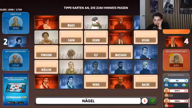 01:14:55Ein Spieler wählt 'H&M' in der Annahme, dass dies ein cleverer Hinweis auf 'Kostüm' oder 'Kunde' sein könnte, was jedoch völlig falsch liegt. Dieser Missverständnis führt zu großer Frustration und mehreren Selbsterniedrigungen durch den Spieler. Die Reaktion zeigt, wie wichtig präzise Kommunikation und klare Hinweise im Spiel sind, besonders bei vermeintlich einfachen Verbindungen.