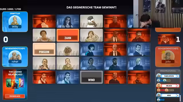01:31:20Die Spannung steigt als der Timer knapp wird und die Spieler unter Zeitdruck stehen. Ein Spieler wählt 'Löwe' als Antwort, obwohl der Mitspieler 'Amazonas' vermutet hatte. Dieser Konflikt eskaliert und führt zu Disqualifikationen und gegenseitigen Beschimpfungen. Die Situation verdeutlicht den wettbewerbsorientierten Charakter des Streams und die emotionale Belastung unter Zeitdruck.