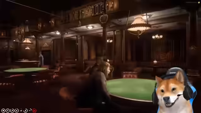 00:18:53Im Casino wird der Streamer gezwungen, einen sogenannten 'Freude-Tanz' zu vollführen. Die Anweisungen sind detailliert und umfassen die Haltung, die Atmung und die Beinarbeit. Die Interaktion entwickelt sich zu einem spielerischen Machtkampf, bei dem die Figur des Streamers gefordert wird, sich adäquat zu verhalten und sich nicht blamiert. Der Streamer muss Tanzschritte einstudieren, was auf humorvolle Weise scheitert.