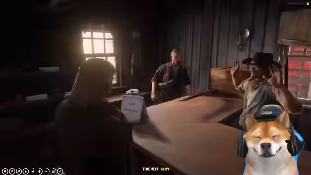 02:23:41Nach der langen Flugreise landet der Streamer in Tumbleweed und sucht den neuen Saloon. Dort trifft er auf den Inhaber Jesse. Auf Anraten von 'Eli', einem NPC, den er zuvor kennengelernt hatte, bittet der Streamer Jesse um ein Freibier und erzählt von seiner langen Reise aus Wien. Die Konversation verläuft unkonventionell, mit Alkohol und einer humorvollen Interaktion, die das abenteuerliche Treffen in der wilden Westen-Szenerie unterstreicht.