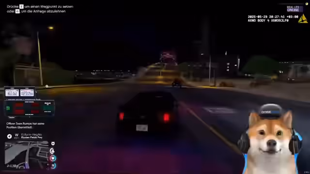 00:00:00Der Stream beginnt mit der Ankündigung eines gemeinsamen Streifeneinsatzes im GTARP. Der Streamer Sven Rumpe und sein Kollege Herr Moschritz beabsichtigen, mit einem speziell vorbereiteten, aber nicht als Hochgeschwindigkeitsfahrzeug geltenden Mustang auf Streife zu gehen. Nach technischen Vorbereitungen und Diskussionen über die Musik während des Streams wird das Outfit ausgewählt. Es wird entschieden, sich als Zivilist zu kleiden, um unauffälliger patrouillieren zu können. Nach der Auswahl der Kleidung und Ausrüstung, einschließlich Weste, Bodycam und Handschellen, beginnt die Streifenfahrt.