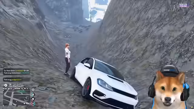 00:02:42Während der Fahrt mit einem neuen Fahrzeug werden mehrere technische Anomalien festgestellt. So fehlt beispielsweise die Tür am Auto, was das Einsteigen unmöglich macht, und der Streaming-Modus auf Discord funktioniert nicht mehr. Die Moderatoren debuggen das Fahrzeug und vermuten, das Problem könnte mit einem Dummy-Modell zusammenhängen. Parallel wird versucht, den Discord-Streaming-Modus manuell zu aktivieren, um den Lärm des Spiels aus dem Stream zu filtern.