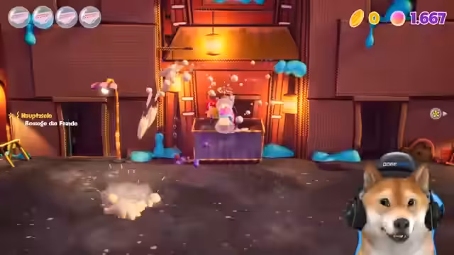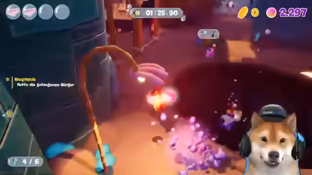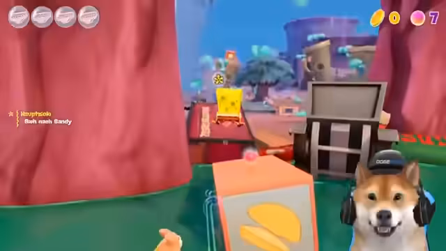 00:02:11Nach dem Einloggen beginnt das eigentliche Abenteuer in Bikini Bottom. Patrick, der sich in einen Ballon verwandelt hat, dient als Fortbewegungsmittel. Eine magische Seifenblasen-Explosion hat die Stadt zerstört und die Freunde in verschiedene Traumwelten gesaugt. Die Mission ist, die Freunde zurückzuholen. Zuerst muss man jedoch Patrick aus einer Baumkuppel befreien und einen magischen Blasenstab erlernen, um sich in der Welt zu bewegen.