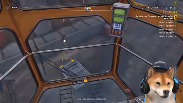 01:51:13Für den Bau der Flutmauer muss ein Kran eingesetzt werden. Nachdem das Fahrzeug in Position gebracht wurde, wird der Kran ausgerüstet und die Steuerung durchgearbeitet. Die Tastenbelegung für Bewegungen, das Drehen des Krans und das Handling der Last muss erst erlernt werden, was den anfänglichen Prozess verlangsamt.