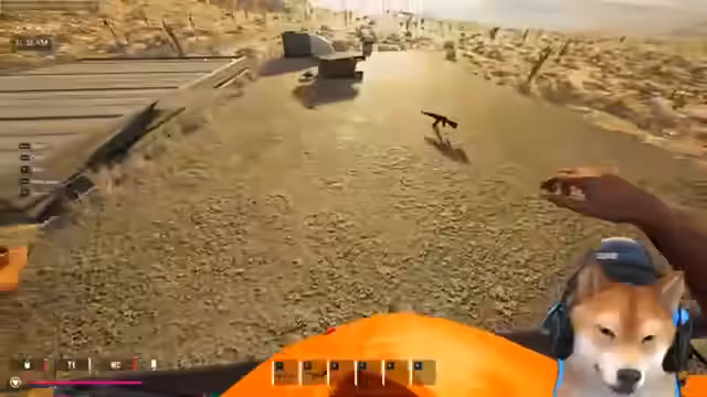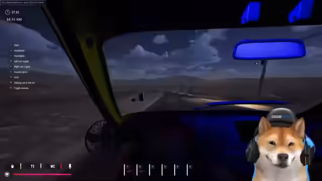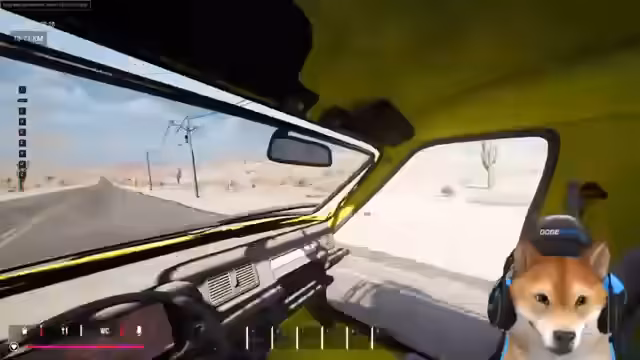 01:56:44Der Streamer interagiert mit seinem Zuschauer Freddy, der im Beifahrersitz sitzt, und bittet ihn um Feedback oder macht sich über seine langsamer werdende Fahrt lustig. Die Suche nach dem fehlenden Pedal wird zur zentralen Running Gag des Streams. Im Hintergrund bedankt sich der Streamer bei den Zuschauern für Abos und Spenden, was die Communitybindung zeigt. Der Stream endet damit, dass die beiden weiterfahren, um eine letzte Chance auf den Fund des entscheidenden Teils zu nutzen, während die Ausrüstung der Fahrzeuge weiter verfällt.