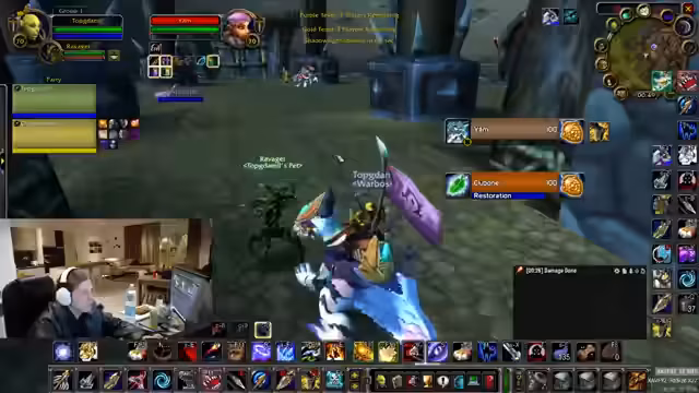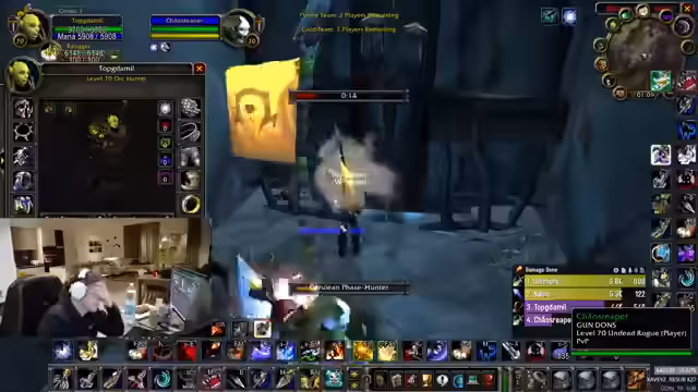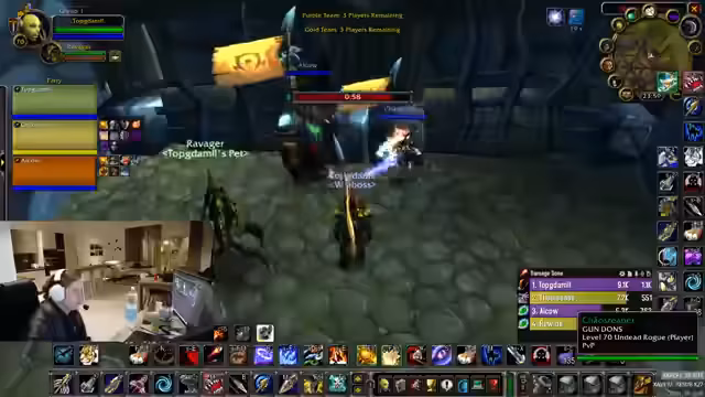 00:05:59Der Stream beginnt mit lauten, unstrukturierten Gesprächen und teilweise unverständlichen Äußerungen aus dem Chat und vom Streamer. Nach technischen Vorbereitungen startet der Streamer in World of Warcraft: The Burning Crusade (TBC) und beginnt mit einem 3v3-Arenakampf im Team 'BMFerrorog' (Beast Mastery Hunter, Feral Druid, Rogue). Der erste Kampf endet mit einer schnellen Niederlage, was auf einen schlechten 'Opener', einen schlecht platzierten 'Blind' und einen fehlenden 'Stun' zurückgeführt wird.