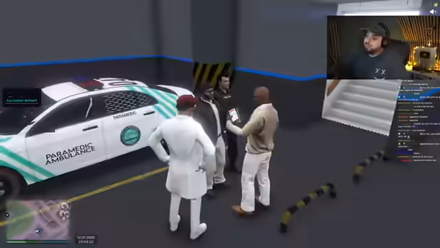 00:09:03Der Streamer beginnt mit der Rollenspiel-Simulation und wählt den Medic-Job, um Cash zu verdienen. Er möchte eine entspannte Session, im Gegensatz zu den Ereignissen des Vortages. Ein Zuschauer wirft eine absurde Frage, ob er schwanger sei, was zu einer sofortigen und chaotischen Reaktion im Chat führt. Der Streamer reagiert verwirrt und versucht, die Stimmung zu beruhigen, während die Dynamik zwischen ihm und den Chat-Teilnehmern zunehmend unvorhersehbar wird.