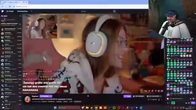 02:40:24Eileen teilt während des Streams persönliche Informationen über sich. Sie berichtet, dass sie während ihrer Kindheit als Junge identifiziert hat, sich in der Pubertät jedoch geändert hat. Ihr größter Wunsch ist es, einen treuen Partner zu finden, ähnlich wie in der Anime-Serie 'Darling in the Franxx'. Außerdem spricht sie über ihr jetziges Leben: Sie arbeitet im Amt, geht ins Gym und streamt in ihrer Freizeit.