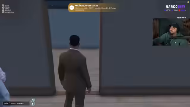 00:57:30Danergy startet das GTA RP als 'Partej Kartu' mit der Einreise nach Narko City. Bei der Einreisekontrolle erklärt er seinen Charakter als angeblichen Piloten und wird humorvoll von einem Beamten befragt. Die Szene endet mit einer Running Gag um eine gestohlene Unterhose und der offiziellen Erlaubnis für den Aufenthalt in der Stadt.