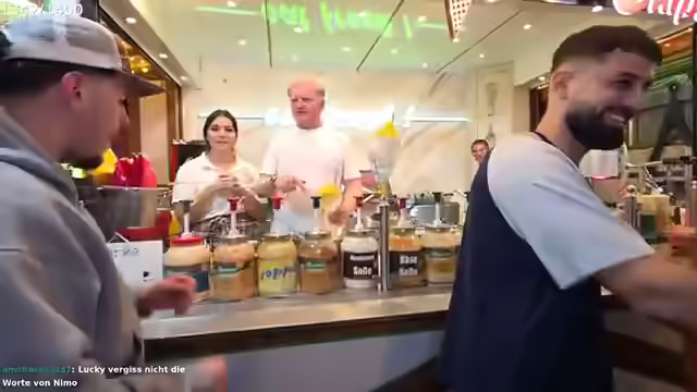 00:04:02Es wird überlegt, was man auf der Dippemess essen soll, wobei Schokoladenerdbeeren, gebrannte Mandeln und Crêpes als Favoriten genannt werden. Langosch und Flammkuchen werden ebenfalls diskutiert. Die Streamer sprechen über ihre Essgewohnheiten und Vorlieben. Einer der Streamer erwähnt, dass er eine Drehgenehmigung für die Dippemess hat. Es wird über Bargeld gesprochen und der Streamer muss Geld abheben. Ein Stofftier wird an ein Kind verschenkt. Es wird überlegt, welche Attraktionen besucht werden sollen, darunter ein Riesenrad und Autoscooter. Ein Spielautomat wird ausprobiert, um einen Yoda zu gewinnen. Es wird sich über die Herausforderungen und den Spaß beim Spielen am Automaten ausgetauscht. Ein gewonnener Preis wird an ein Kind verschenkt. Die Streamer überlegen, ob sie eine bestimmte Attraktion umfahren sollen und äußern gemischte Gefühle bezüglich des Nervenkitzels. Sie entscheiden sich für eine Erdbeerschokolade und besuchen einen Stand.