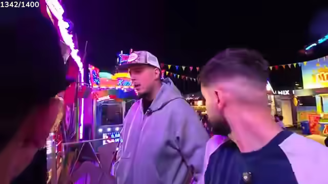 00:30:00Es werden Überlegungen angestellt, ob man auf der Dippemess eine Frau finden kann, insbesondere beim Autoscooter. Die Streamer fahren mit einer Attraktion, die sich als anstrengend erweist. Es wird überlegt, welche weiteren Attraktionen besucht werden sollen. Ein Zuschauer wird gegrüßt. Es wird über Probleme mit dem Mikrofon gesprochen. Ein Zuschauer spendet und wird dafür gelobt. Die Streamer fahren mit einer weiteren Attraktion, die sich als weniger aufregend erweist. Es wird überlegt, ob man eine Wasserbahn fahren soll. Ein Spielstand wird besucht, an dem man seine Stärke messen kann. Ein Streamer versucht, den Hammer zu schwingen, ist aber nicht erfolgreich. Ein Zuschauer darf ebenfalls schlagen. Die Streamer wollen zum Autoscooter gehen und überlegen, wie man dort am besten fährt, um Spaß zu haben und andere zu ärgern. Es wird über die 'Erziehung' der jüngeren Fahrer gesprochen.