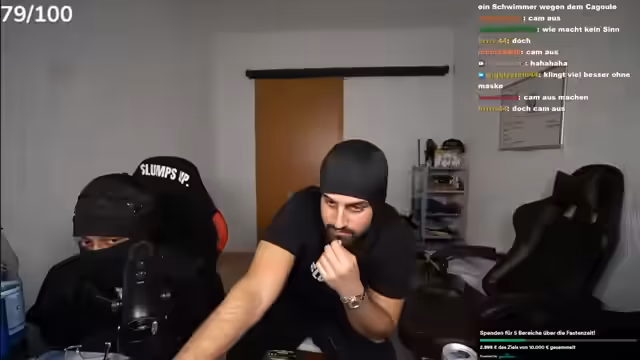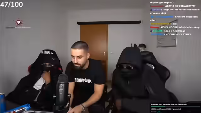 02:55:39Es steht 2-2, die letzte Runde entscheidet über den Sieg. Für Reezy wird ein spezieller Song ausgewählt. Der Streamer erzählt eine Storytime zu einem Song von Pasha. Der Song ist Hauseingang. Der Streamer verliert die Runde. Der Chat hat den Streamer enttäuscht. Das Hoodblack-Team sieht zu. Der Streamer hat verloren, weil der Chat ihn gefickt hat. Es wird überlegt, einen Studiostream zu machen, da die Community dies wünscht. Safraoui guckt auch zu. Ein Studiostream mit Hoodblack muss passieren. Es wird nach einem Song gefragt, der noch nicht gehört wurde, D&D. Der Streamer ist nicht mehr auf diese Drip-Song. Er kriegt seinen Kräner ein.